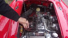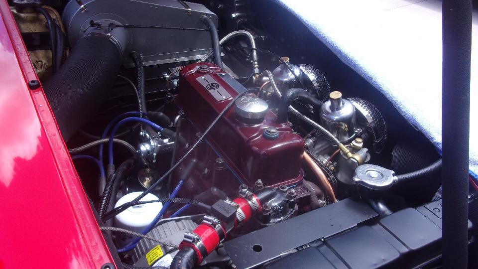 By this time the friend dropped in with his precious MGA. This one has a few tricks including MGB 1800 engine with HS6 carburetors. Aside from a bit of bling, my picture is trying to hide the aluminum radiator with electric fan.