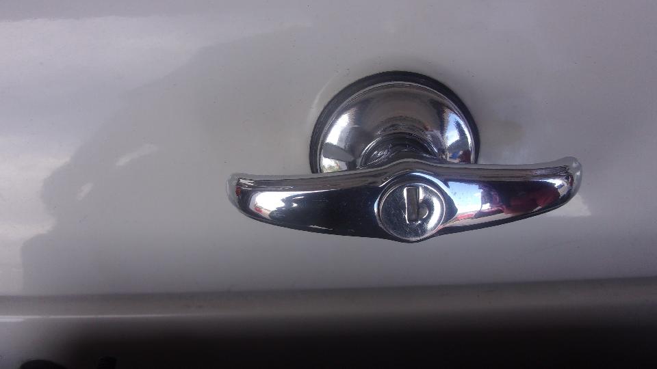 I paused a bit for a look at the boot latch on Ed's Midget as I have been considering possibly using these parts to improve the security of my trailer lid, to be replacing the makeshift toggle latches I installed in a rush in 1997.