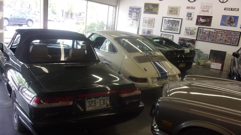 But we did get a tip on another (new) shop that might work on vintage British cars, and a half hour later were hauled up in front of RSR Motorsports in Layton, UT. Say hello to the owner Mark Russle. Lots of German cars in the shop today, but in fact they do work on vintage British cars as well, whenever they may happen along.