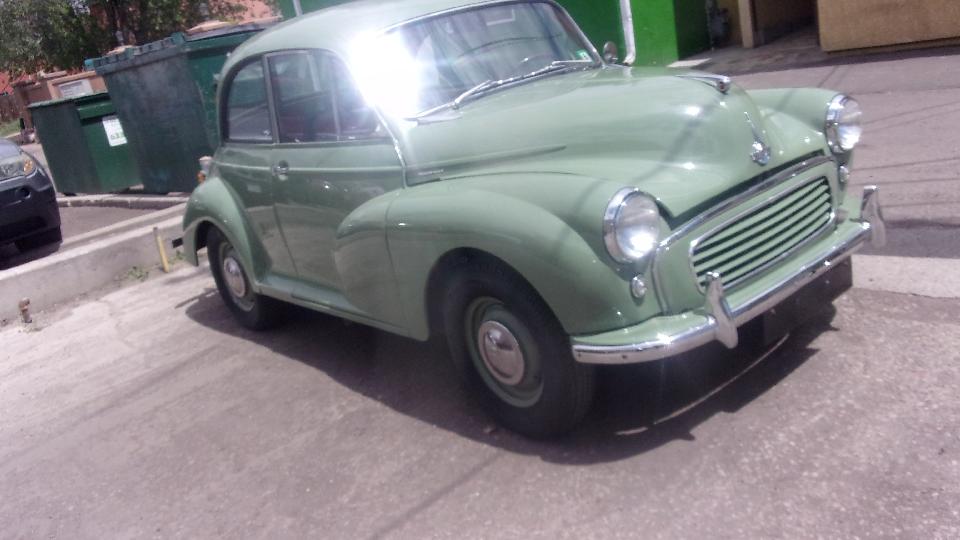 Most of the rolling stock was indoors, but we did find a nice Morris Minor 1000 out back, ready to go home after recent service. We walked across the street to another building where there was leased storage space for several more cars, again mostly British.