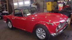 I was particularly taken by the TR4A roadster with the 3-piece removable top. It has a bolt-on 3-window rear section, and a removable hard roof panel (which has no carry space in the car), and a soft top panel to replace the hard panel. It also has a stow-away convertible top, but that has not been installed in recent years. There was also a TR6, 3 E-Types, and at least 2 MGB in the shop today. Stuff cycles around regularly, so expect something different almost daily.