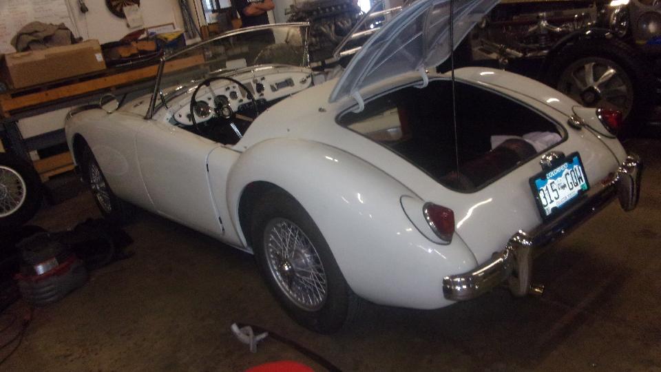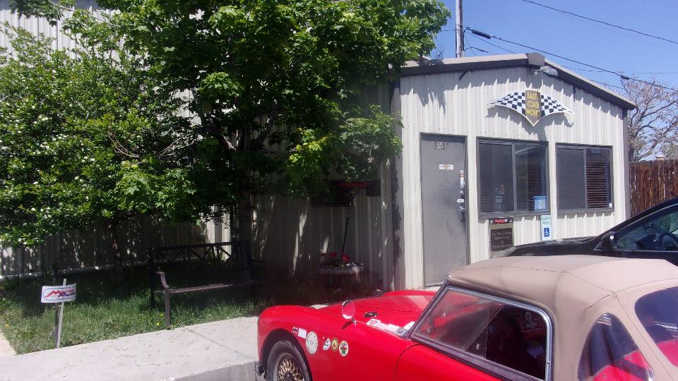 We stopped to visit Ax And Allies in Denver, CO (used to be Auto Wizards). The shop changed hands in 2012, now run by one of the former employees. Good size shop here, although they fondly call it their hole in the wall (thinking they need more space). Not sure why some customer is sinking money into a Jensen Healey, but there it is. Nice MGA and a couple of TRs, and a Mini under the tarp..