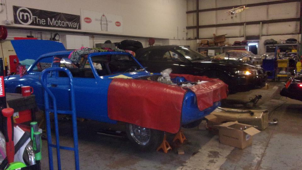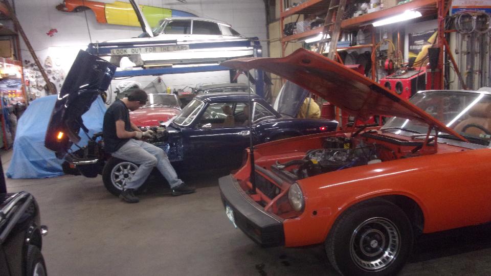 We were introduced to his MGB Special with 5-speed and Oldsmobile Quad Four electronic fuel injected engine (think 200 HP). In case you may be interested, there's another one sitting in the corner looking for a new home.
