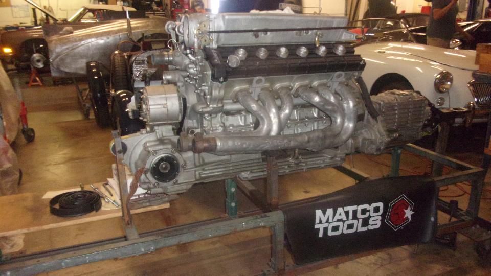 This would be a Ferrari rear engine V12 with the flywheel, clutch and gearbox up front, output shaft down the side, and rear drive differential at the back. I dig this exotic technical stuff. The white board is scheduling and tracking of the jobs in the shop, busy place. Last picture is driver cars outside, good to be used.