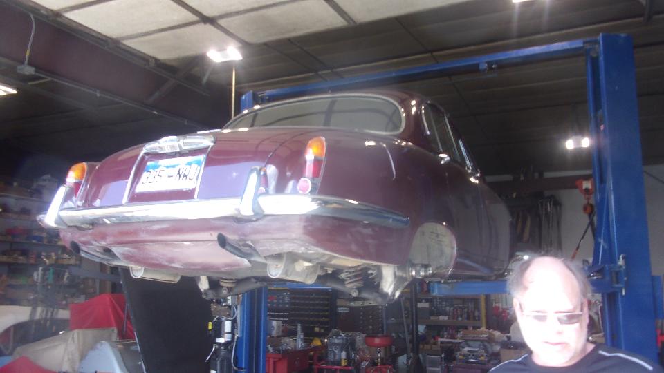 We finally arrived at British Sports Werks in Estes Park, CO, hello Kevin Spooner. He moved the shop here from Greeley, CO in 2018, and he is quite happy with the new location, and fully busy by word of mouth, no advertising required. There were several cars outside, mostly project cars or parts cars, not fully organized yet since the move. First step inside finds the Jaguar on the rack for some chassis work and new tires.