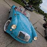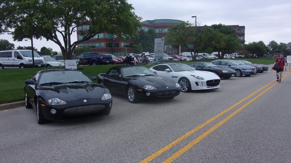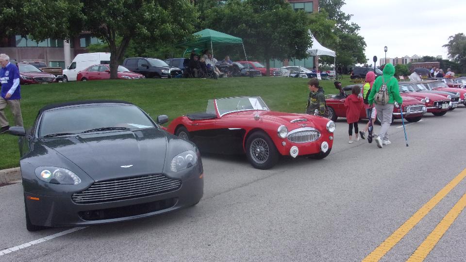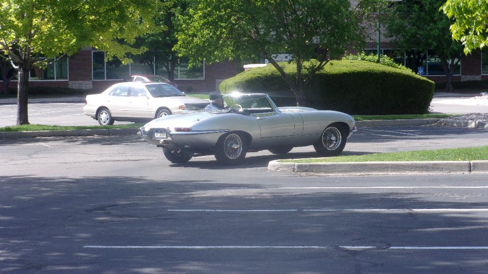 Quick breakfast on the run, and we pulled into a small British car show in conjunction with The Scottish Festival & Highland Games in Itasca, IL. Been there, done that, had enough Scott-fests recently, so we just hung out around the Brit cars for a few hours. On a day threatening rain with small turn out, the MG clubs wanted to have more MGs than Jaguars, and almost succeeded. I spotted eight Jags before the E-type left at the first sign of rain. Six of the remaining Jags were 21st century cars, with the last one being perhaps 1995 XJ6. There were also one modern Aston Martin, and one Austin Healey 3000 (score one for vintage).