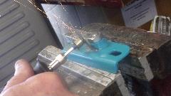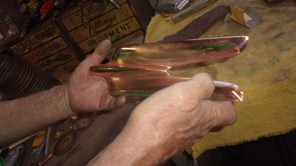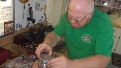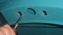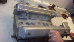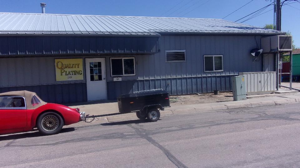 Ah, something to do on a week day. We dropped in to visit Quality Plating in Yuma, CO. Had a BBS message a couple days earlier from someone in Texas who just received delivery of some chrome parts from this shop. We almost skipped it due to being out of the way and killing a day. The guy in green was diligently working on restoration of some pot metal parts. After cleaning, solder fill all the pits you can find and polish smooth, then copper plate and go back to looking for more pits. It often requires a few cycles before it's smooth enough to nickle and chrome plate to look like new. View of the rear side of the part gives an idea of the corrosion and pitting they had to deal with.