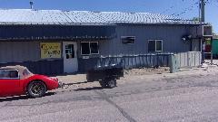 Then we stopped at Road & Track Motors Service in Lincoln, NE. We found a locked door, but some lights and some cars inside. A fellow in the Upholstery shop next door told us the gent who owns R&T is elderly (maybe 80) and doesn't come in much any more. We tried a phone call but got no answer (and no messaging available). While the shop is still there, be advised that it may be generally dysfunctional.