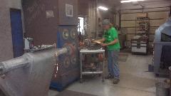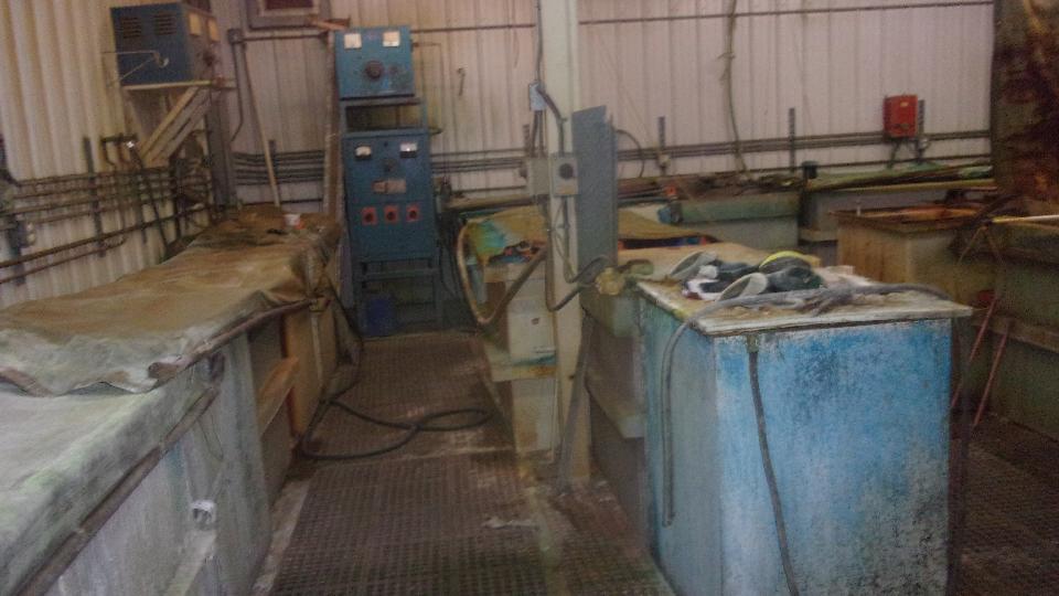 There was a pair of die cast pot metal headlight trim rings corroded with hole through, not sure there was enough metal left to save them, but he was working it. Thr flying bird hood ornament was thicker and heavier, doing better for patching the pits, almost finished repair and nearly ready for nickle/chrome plating. Then we got to visit the plating room. This is like bonus day when they get to put the repaired parts in the tank and they come out chrome plated and ready for final polishing. Like body painting, most of the quality is in the prep work.