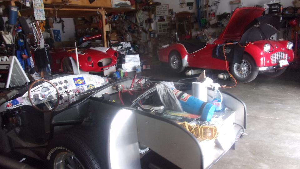 The Cobra kit is his personal toy, apparently earning him substantial money on racing bets (maybe never been beaten in a street race). The TR3 has a long history dating back to when it was new and racing on an air base. John has recently been refurbishing that car, and it is now ready to go home to its current owner.