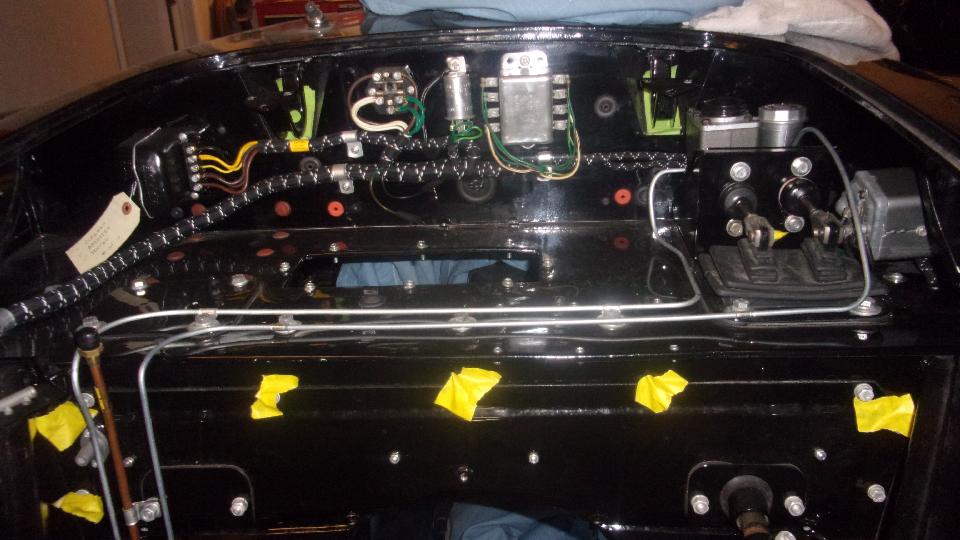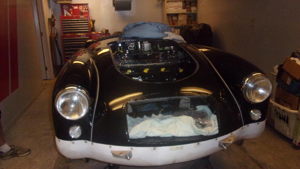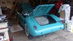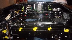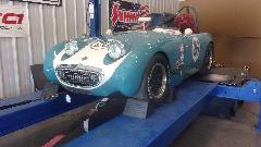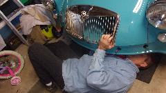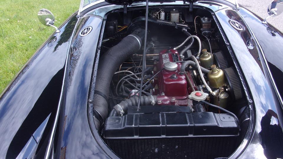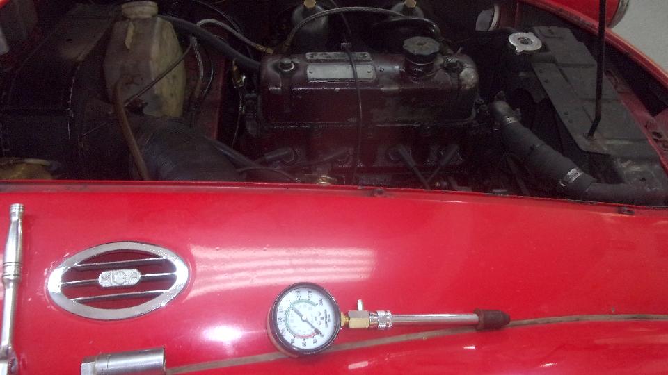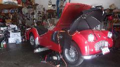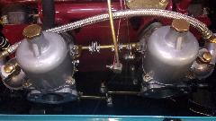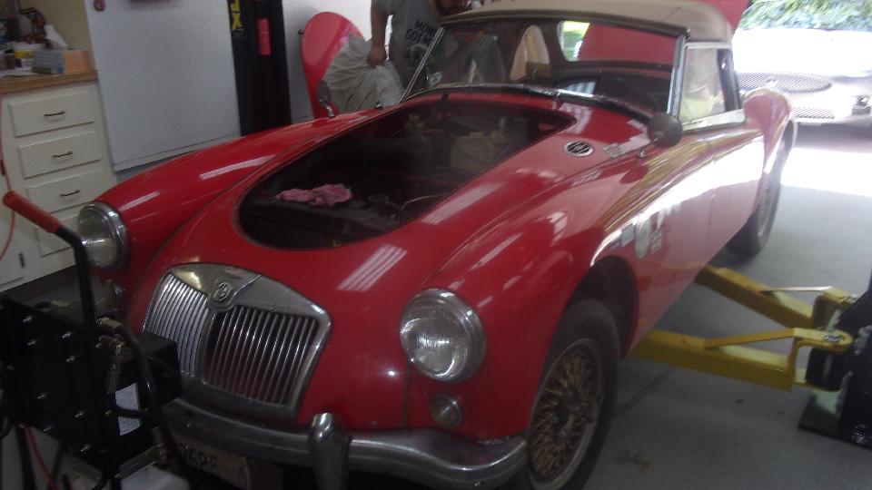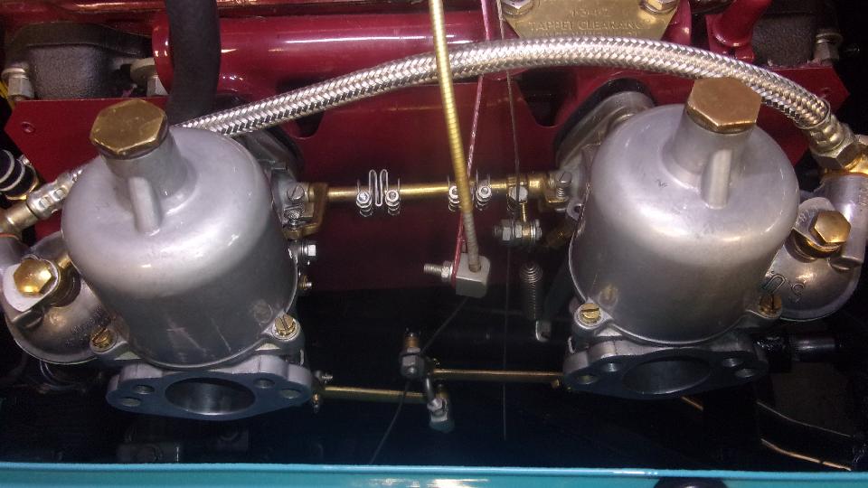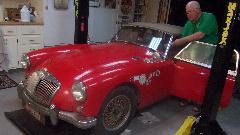 Nearly finished now, just needing bumpers and convertible top installed, the engine ran but was a bit out of tune, which is where I came in. We did some adjustments on the carburetors, set ignition timing, checked mechanical and vacuum advance, and had it running well. We removed the grille and spent some time realigning the bonnet latch to work well.