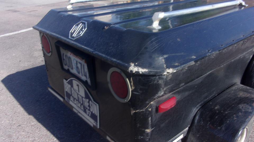 It moved the trailer a couple feet sideways, and the jerk just kept going. He then pulled out in front of another car in the street nearly causing a collision, and still kept going, not very fast but wandering around in the street, possibly somewhat impaired. No significant damage to the trailer. That RR corner of the trailer lid looks just like it did before it was hit (not the first time).