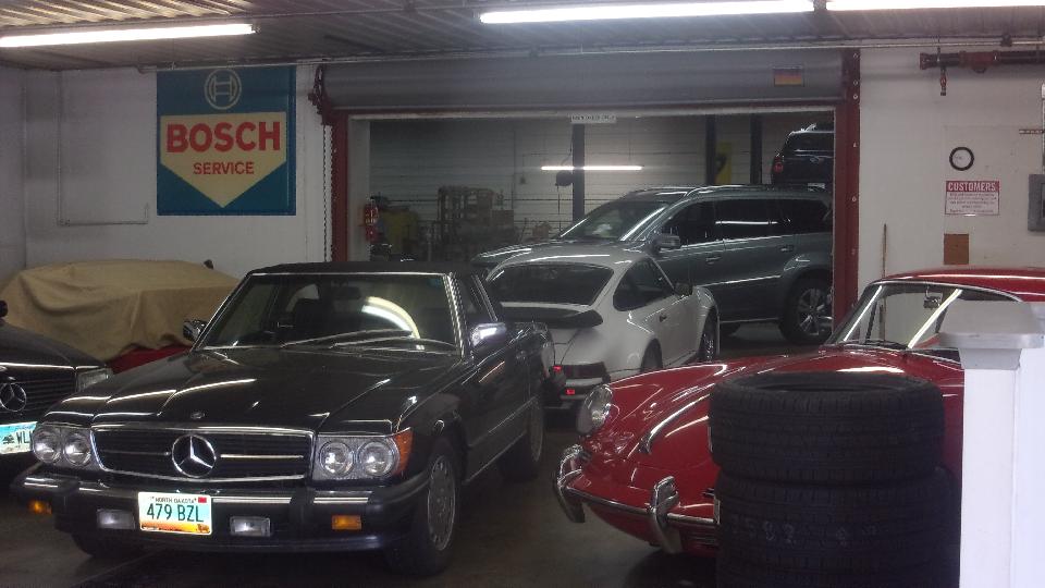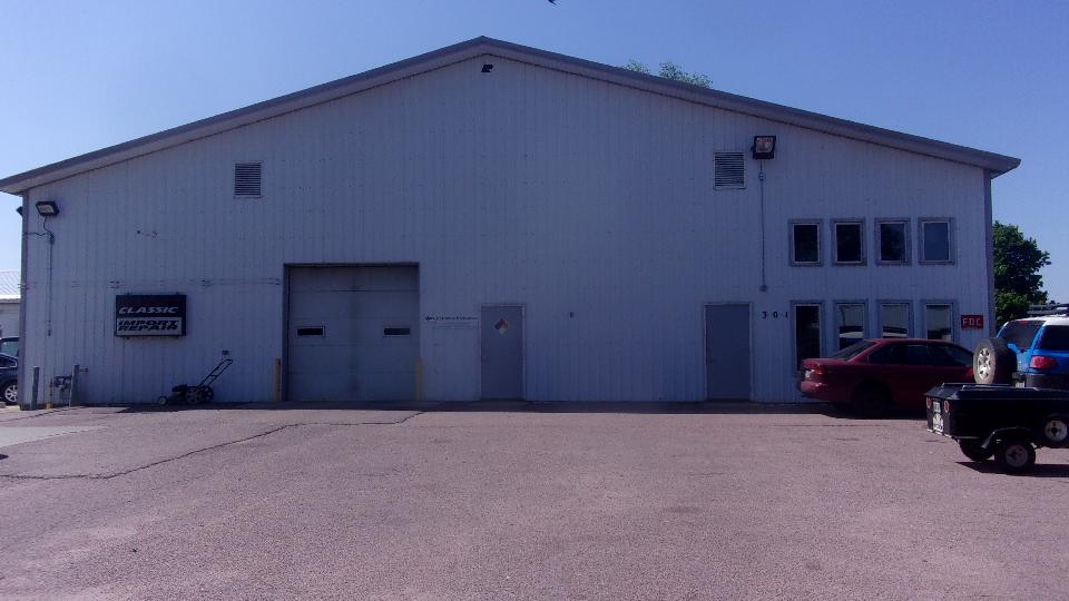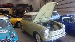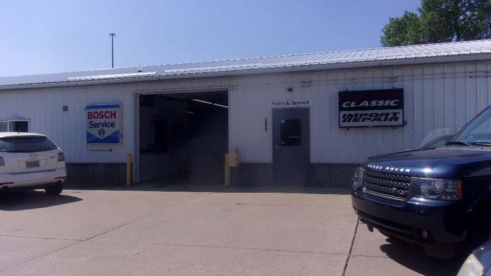 After a late breakfast we were off to visit Classic Import Repair in Sioux Falls, SD. Visitor entrance and office are in the backset left wing, along with show space filled with mostly German cars. The larger forward building is the work space. If you look closely you may see a Mini up high in the third picture. They do work on vintage British cars, but by appointment only, as there is a three month backlog of work in the shop.