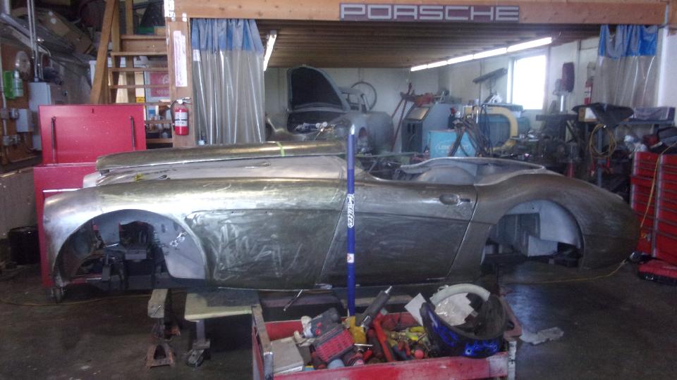 The shop is impressive for a young guy with a helper. The Sprite was in for minor repairs, waiting for pickup. The big Healey is a full restoration sitting an a new frame from Australia. The Lotus Europa upstairs belongs to his son (currently 15 years old). The Porsche 356 in the paint booth is another ground up restoration, about to get primered. Lots of pictures on the walls up front of trophy winning cars that came out of this shop. This one will be here for a long time to come.