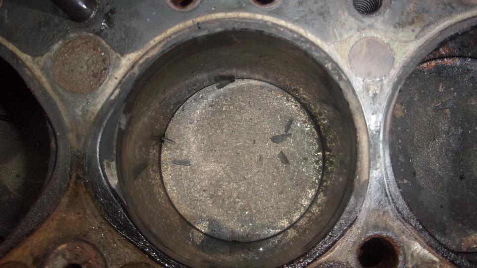 Yes, the #3 piston had seen better days. Once we got past the apparent small hole in the top edge, damage in the first two ring grooves was more apparent.