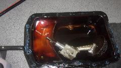 Good luck this morning the new pistons were delivered around 9:30am while I was at a parts store picking up a cylinder hone and a piston ring compressor. So we were on the job early with hopes to get 'er done in one day. Lon has this nice little two post hoist that he stores out of the way when not needed. Five bolts in the floor on each side, and plug in two hydraulic hoses and a line cord, and up it goes. With short head room in his garage, lift is limited to about four feet, which is enough to sit on a short roll-about seat and not whack my head too much. We soon drained and removed the sump and oil pump and popped the pistons out.
