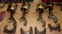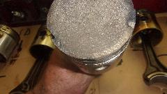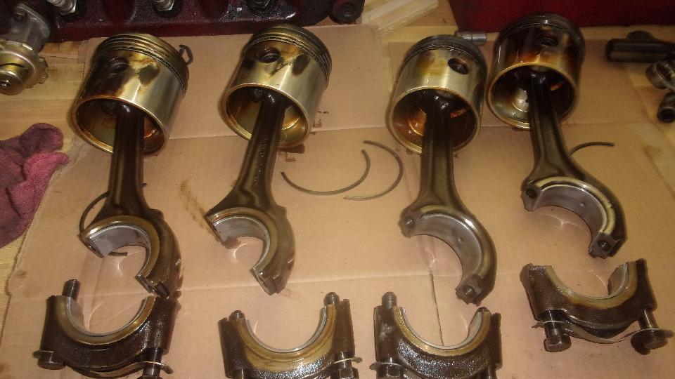 sticking jet on the rear carb, and reassemble a dashpot damper piston that had dropped its snap ring. Carbs installed, oil in the engine, fire it up, runs well. After warm up we did a valve adjustment and minor adjustment of the carbs. Expect to readjust idle speed again after the cylinder walls are smoothed out. Bonnet reinstalled (six thumb screws), clean up and pack up the tools, more chat, time flies when you're having fun, and it was nearly midnight when we pulled out. A day well spent, feeling good to have the problem fixed, remember "it's just maintenance". Maybe I shouldn't be too disappointed those pistons only lasted 178,790 miles, as that may be more than I ever got out of a set of pistons before.