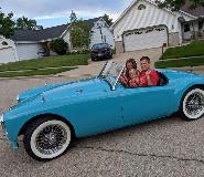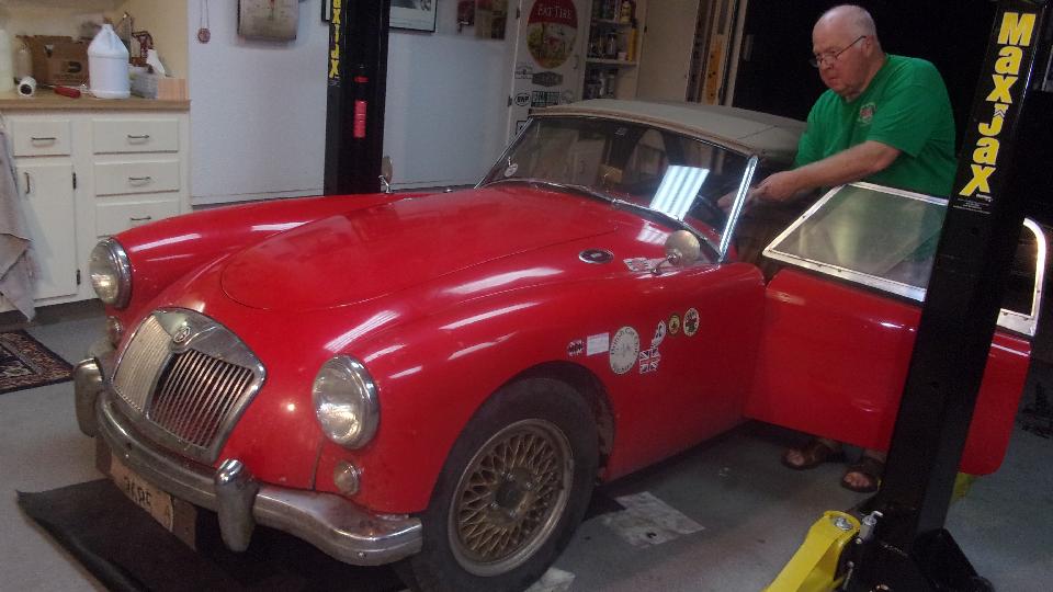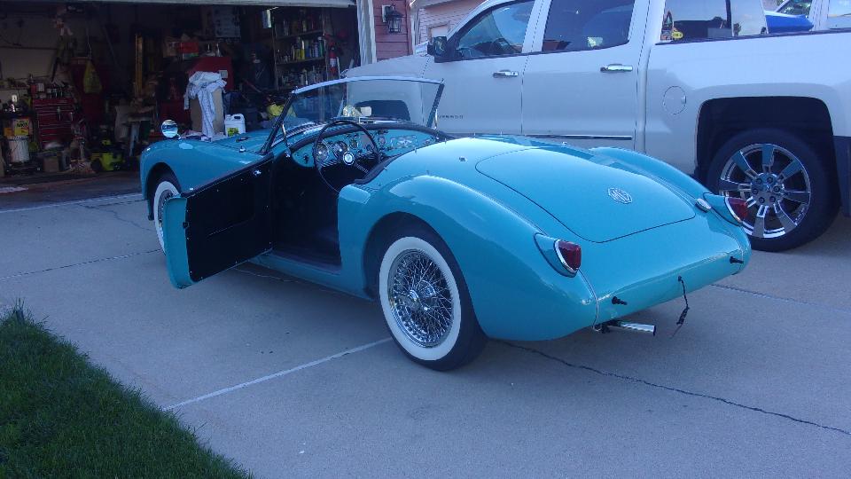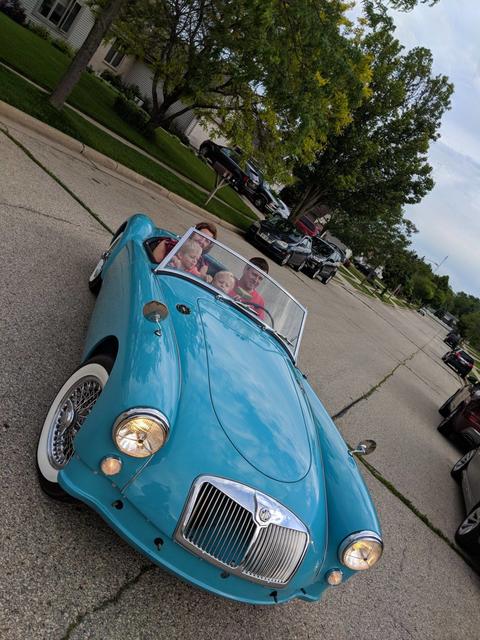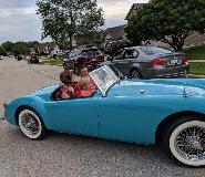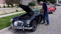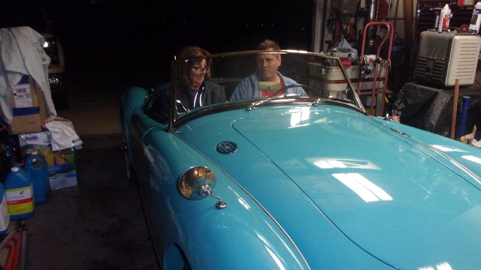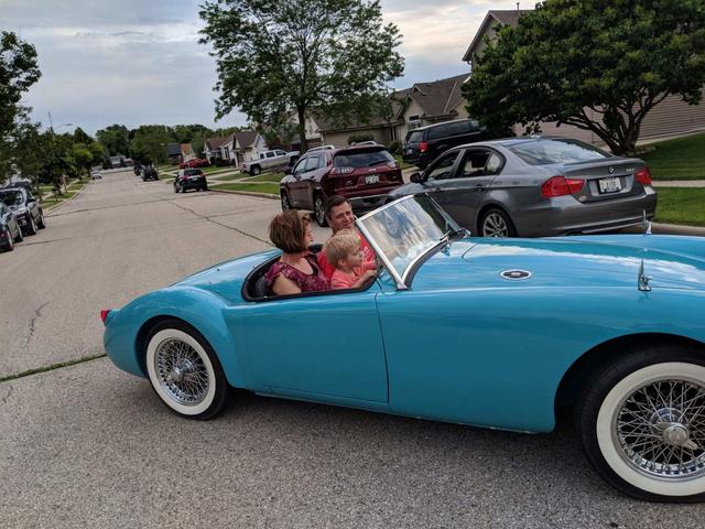 End result was a nice test drive around the neighborhood, which would be the first time on the road in 48 years, jolly good fun. We had time for dinner at a local bistro in the evening and Ron's wife would join us there after work. After dinner back to the house where Ron got to take his wife for a spin around the block in the new MGA. She seemed to be anxious to see it running, and was tickled pink with the short cruise.