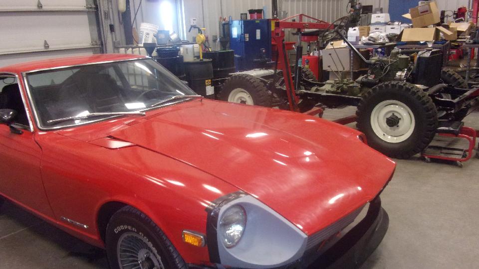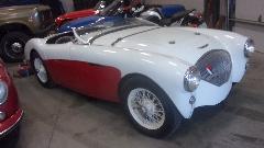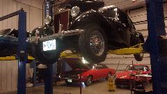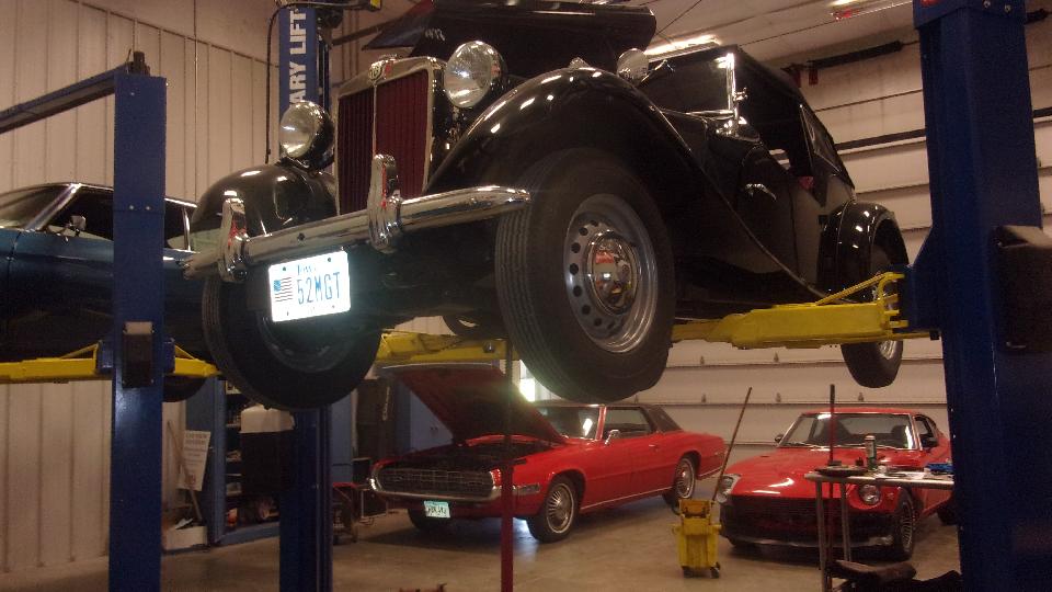 We stopped to visit Mr. Sports Car in Papillion, NE. The owner John Martin was temporarily grounded with broken ribs at time of our visit, but otherwise he still likes working on vintage cars.