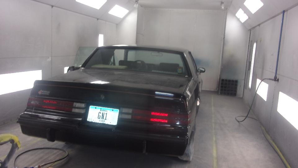 We tripped past the Datsun Z-car and an early Jeep chassis. Shortly on there was the Jeep body behind the Mini, and pretty sure that's a Buick Grand National (GN1) in the paint booth.
