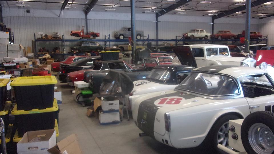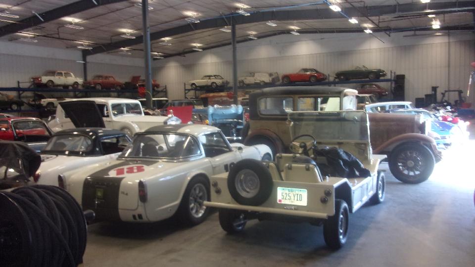 After the racing Sprite on the dynamometer we strolled into the "warehouse" area. Those are not Matchbox toys on the shelves, those are real cars. How would you like to have this space problem?