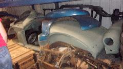 Along with service and repairs, they also have a substantial inventory of used parts here. The first pallet holds MGA rear axles and 1600 type gearboxes. Then lots of suspension parts, while the wood cartes contain a myriad of smaller parts. We found 4-wheel-drive corner with Land Rovers and Range Rovers sitting behind a row or Triumph GT6+. And very nice Austin Healey 100 kicking off a row of even more interesting cars. There were several Sunbeam Alpines, a Sunbeam Alpine Coupe, one Sunbeam Tiger, at least one vintage Aston Martin.