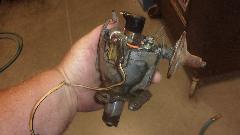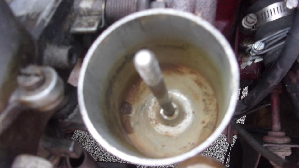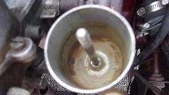 The TD was reporting limited speed running on the road, possibly fuel starvation, so we had a little entertainment of our own. Pulled the fuel hose off the rear carb and switched on to check fuel feed, which looked okay. Pulled the banjo bolts on the float covers to check the inlet screens, which also looked okay. So we removed the float covers and the floats, and extracted fuel from the float chambers to clean out a little "mud" from bottom of the float chambers. Also ran a wire through the horizontal hole feeding fuel from float chambers to the main jets. Couldn't hurt, but I wasn't convinced that we had actually fixed anything yet.