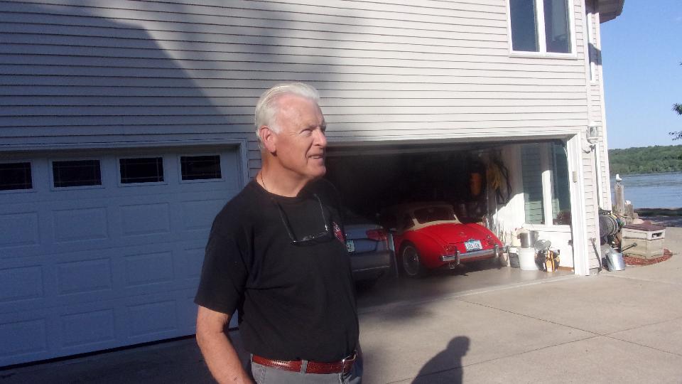 We placed a call to Kirk's Auto Refitters in Davenport, IA, but Kirk was not up for a visit today, so we would skip that one again. Then 47 miles, one hour, up the Mississippi River (to the east), we stopped to visit Gary Spohn in LeClaire, IA. He has an 1962 MGA 1600-MK-II, which apparently doesn't need anything. We also had a brief meet and greet with his next door neighbor, who used to have LBCs in past years, but not at the moment.