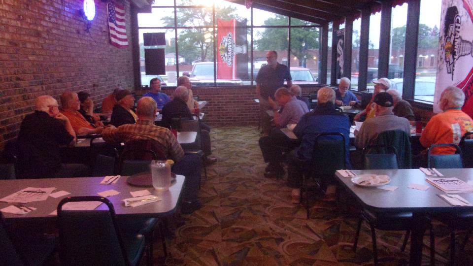Made a couple of phone calls for planning, but only had one appointment this evening, so we got to relax and catch up with a few days worth of photos and notes along with email and BBS. Dropped in to attend the evening meeting with Vintage MG Car Club of Chicago at The Pizza Joint in Northlake, IL. About 20 people inside, no MGs there other than my MGA. Nice bunch with business in order, some cross over/cooperation with Chicagoland MG Club. After the meeting we headed north driving in some rain, landing just north of the IL/WI border for the night.