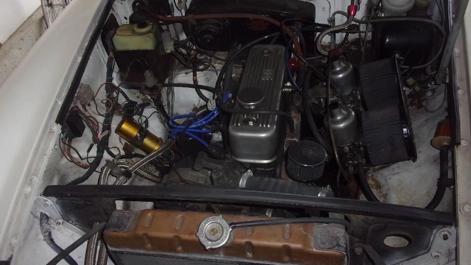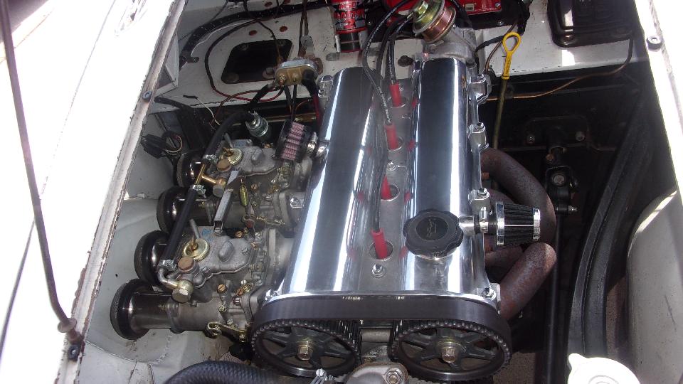 We spent way too much time looking for the timing mark on the crankshaft pulley, being very difficult access on the Midget. After a lot of knuckle scraping we finally managed o clean the crank pulley and apply a couple of white paint marks on the pulley for decent visibility of the timing mark. Then finally crank it up and use the set-back timing light to set timing to 32d BTDC at road speed (vacuum disconnected). Then checking timing at idle speed revealed just 6d BTDC at idle. The difference being 26D at the crankshaft, or 13d for mechanical advance in the distributor (which struck me as rather a lot, but it was real).