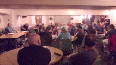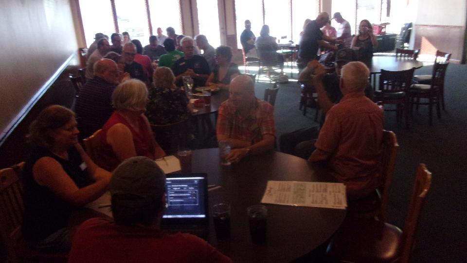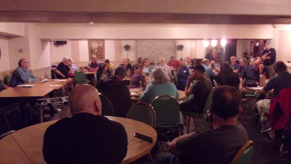 About 40 people inside for the club meeting, a right rowdy bunch indeed, and a good time was had by all. A few more Brit cars showed up during dinner before the meeting. The dark red MGB was for sale.