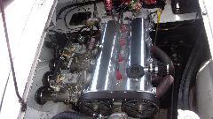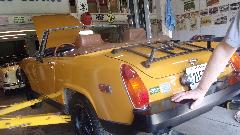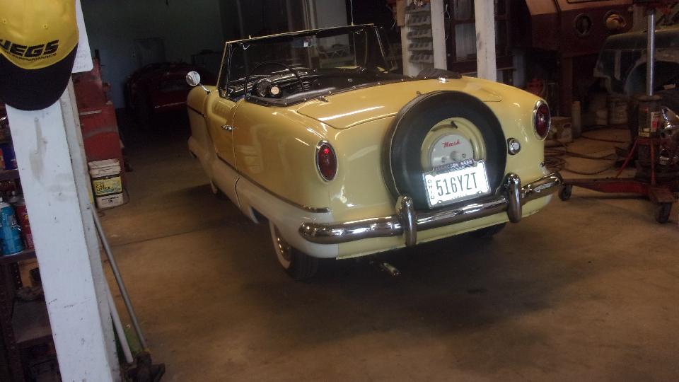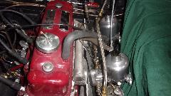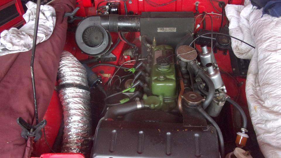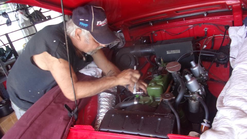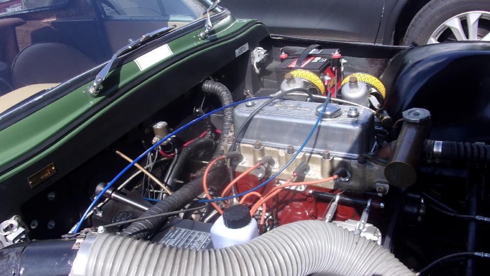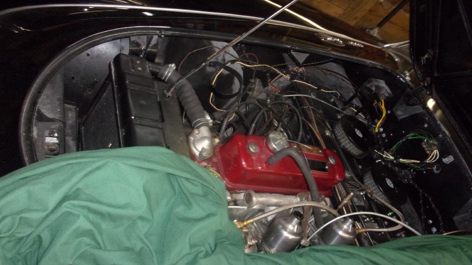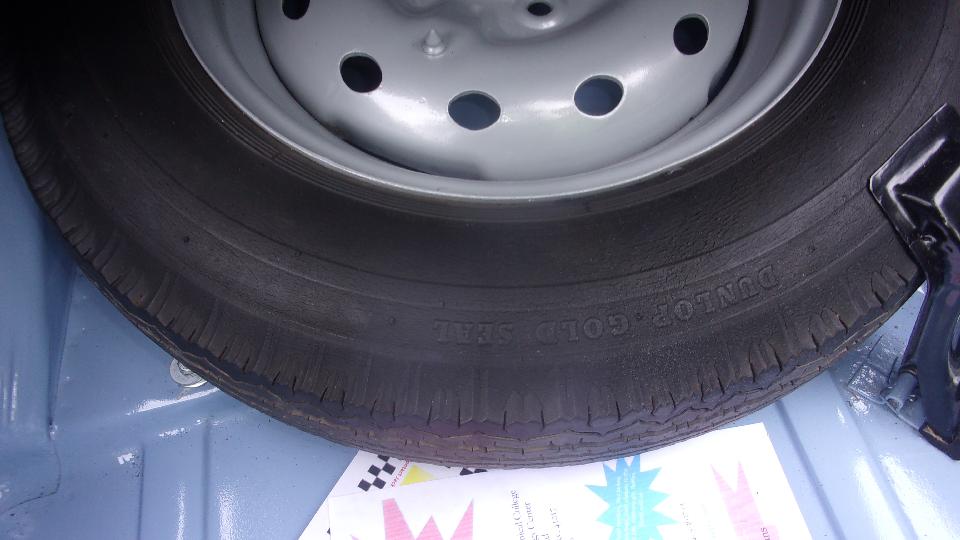 Now that car is finished, and I got to tweak the carburetors a bit. Quaint that he kept one of the original Dunlop Gold Seal tires in the boot for the emergency spare. I think this is the original tonneau cover still in good condition.