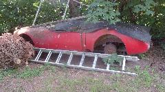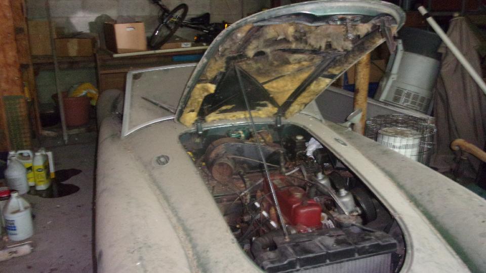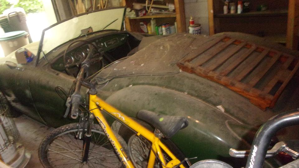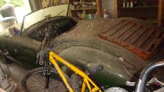 There is another MGA tucked away in another part of the garage. I could see it (sort of), but not well enough to get a picture of it. That one is complete and not very rusty, a good restoration candidate. I think he is thinking about selling it, because he will likely never get around to restoring it. Out back is a third one, festering away under a tree. Missing the engine and windscreen and some other parts, it will likely be a parts car and scrap metal; but who knows, these days people are restoring cars we would never have considered 20 or 30 years ago.
