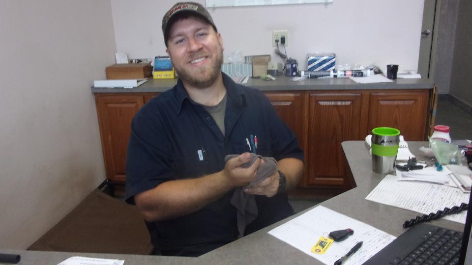 Our first stop today was Delhi Import Service In Cincinnati, Ohio. Say hello to the owner Carey G Saab. The business card lists BMW, Mercedes, Saab and Volvo listed, but they do work on a fair number of vintage British cars as well. There was a Triumph Stag in the shop today, a bug-eye Sprite on the side, and a modern Mini out front. He said he gets a lot of referrals from other shops who don't want to work on the older cars.