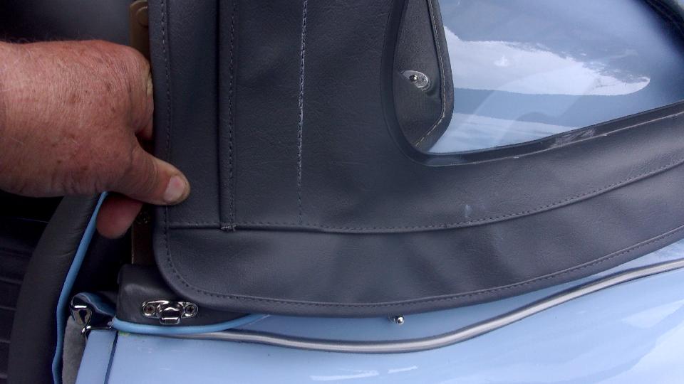 We spent considerable time discussing why replacement side curtains do not fit properly, windscreen doesn't align to the side curtains, the new rag top fabric is too narrow at the front and does not reach the quarter turn fasteners on the sides (bad pattern), and the front wood bow in the top is too long (a common malady).