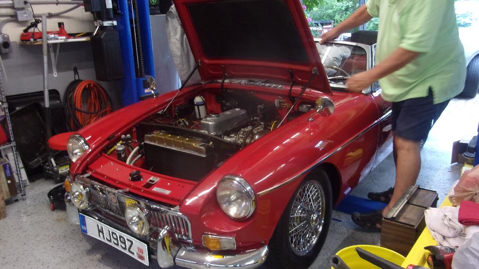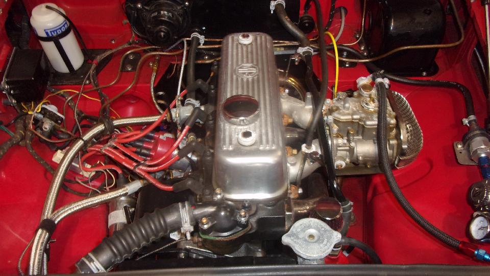 Spent a little more time discussing his MGB with Weber side draft carburetor, fast street cam, Mallory dual point distributor, and why it runs hot. Also how to restore positive crankcase ventilation when using the Weber carburetor. Then we had to get rolling again.