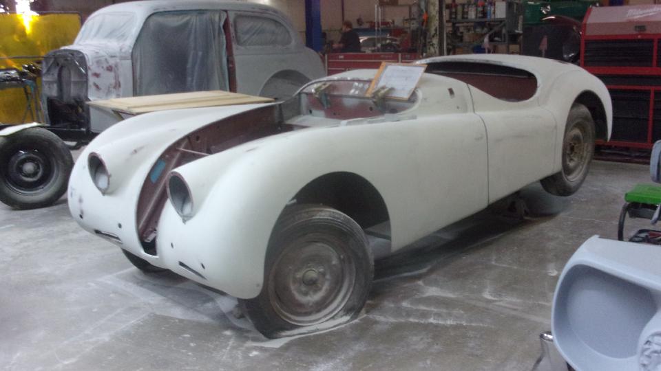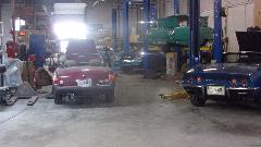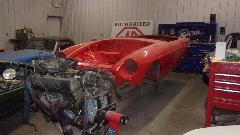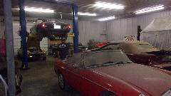 In addition to full restoration work, he does some creative stuff, mostly along the lines of improving performance. The MGB with the Corvette LS engine is in the process of being widened several inches, without modifying the doors or the windscreen (nice trick).