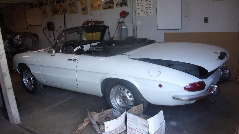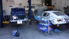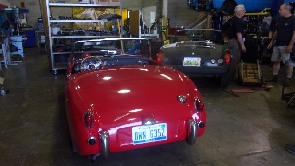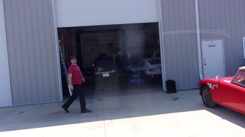 Then we had another referral, this time a real ringer to another new shop run by a younger guy, R.P.Meier (Bob Meier) in Johnstown, OH (and his business cars emphasizes the "R.P.M"). He is primarily a British Car guy. That's his MGB race car out front. The Alfa Romeo snuck into his shop because it belongs to one of his regular Brit car customers.