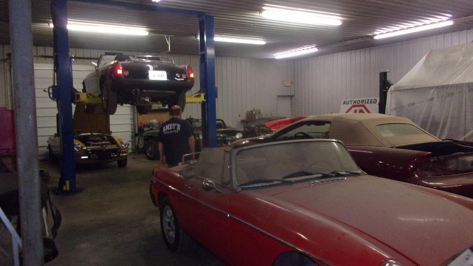 Up early for an anticipated long day, we were looking for Andy's Auto Service in Zanesville, OH. At first it looked like we may have struck out, until we had a chat with the current resident of this little shop. He hd been around the area a long time an knew the Andy was still in business, and told us where to find his new shop. I suppose we would have found him regardless, as he still has the same phone number. The new shop is definitely bigger, and he works on other things (with at least one additional tech), but it looks like the "hobby" side of the business is bigger than the "modern" side. He specialized is stuffing V8 engines into MGBs. Cool hobby?