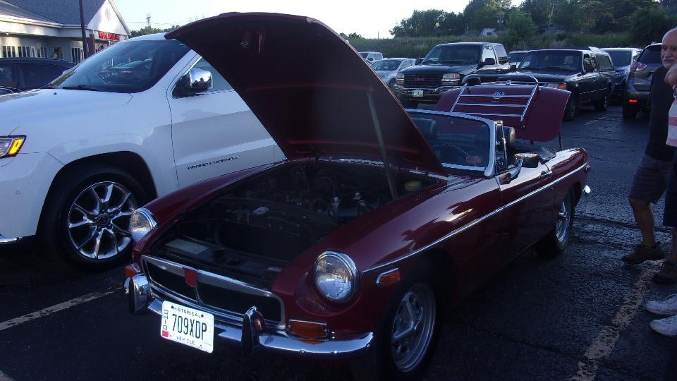 three of us at the meeting. Count heads if you like, I think about 35 people there discussing new members and guests, past events, car projects and problems, upcoming events. Got two requests during the meeting to fix MG Midgets. After meeting got pictures of a few of the MGs present. Then took daughter home and returned.