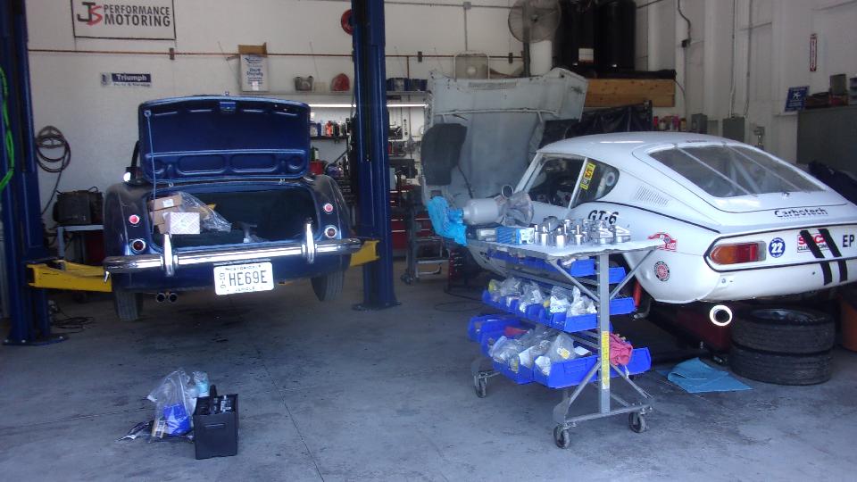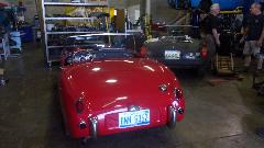 Donnie had a few more toys on hand, like the E-type getting fresh wheels and tires, the MG TD that has won a few show awards, and the Morris Minor 1000 (with 1275 engine, rib case gearbox front disc brakes). Seems like one of two of those may have to go to clear out some space.