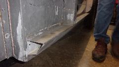 It was once repainted to be BRG. The paint might actually be presentable if the heavy accumulation of dust was cleaned away. There is sheet metal in the body sills, but covered in rust, and if you pick at it you can pull some pieces out of it, so I recon all of the body sills will need to be replaced. Carpeting was replaced with linoleum (unique treatment for sure). Being a complete car it looks like a good restoration project, if someone was so inclined. Eric is going to have to make some decisions if he might free up the brakes and get the engine to run, but pretty sure he will be selling it sometime before winter, whether it gets "improved" of not.