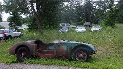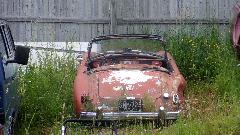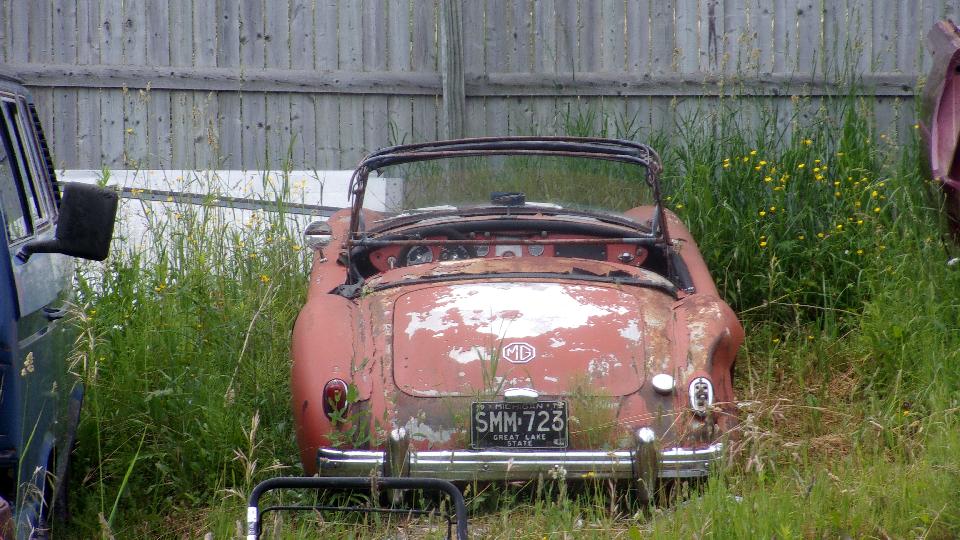 Okay, time for a real late lunch and a cool WiFi break while we check email and BBS, and some of the backlog of photos and notes. Right on 9-pm, just packing up to head north when a friendly soul walked in to ask about the car. Say hello to Ian Kempf of Imlay City, MI. He has an MGB and two MGA. The pics here are one of the MGA that is most certainly too far gone to be restored. It was a one-owner car from new, driven for decades, then finally parked for a couple more decades, always with hope that it would one day be repaired and put back in service. The old owner finally conceded that it would never happen. When the car was sold to Ian (real cheap) there was a promise that some part of this car would live on. We're not sure what that might be, but we have plans to return in a few weeks to have a personal look at the car.