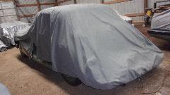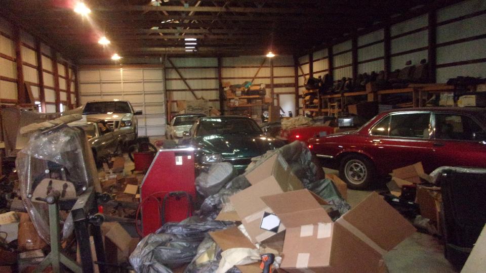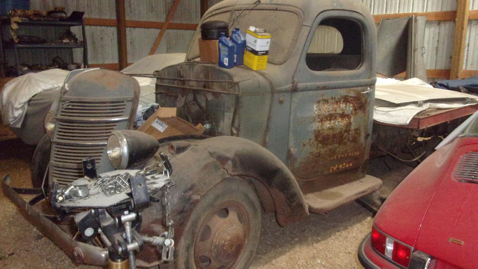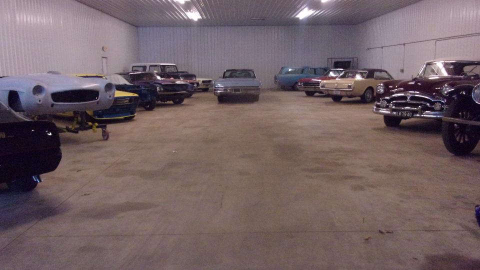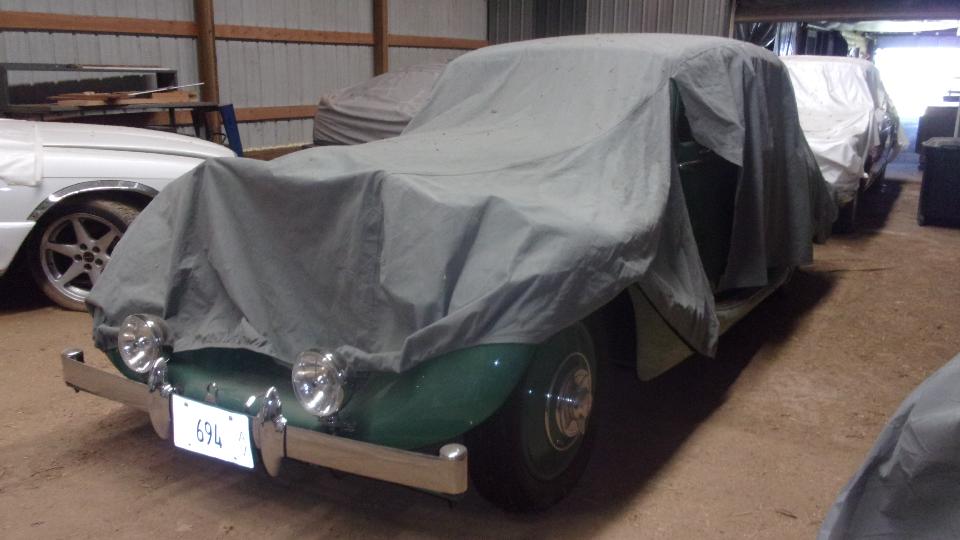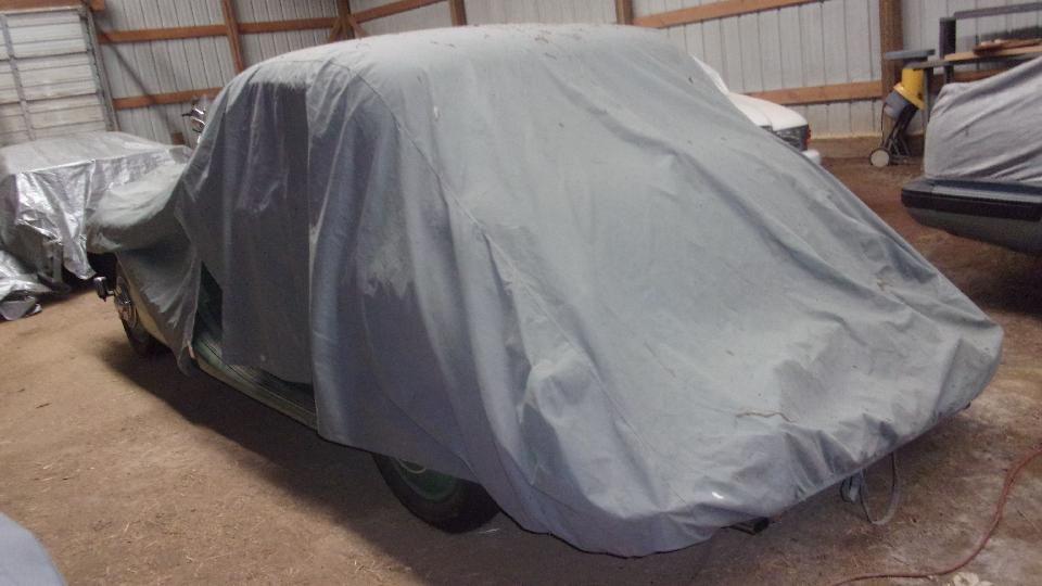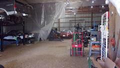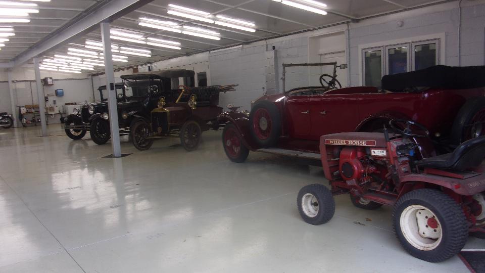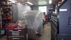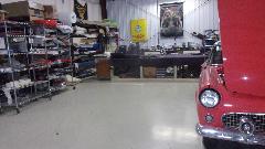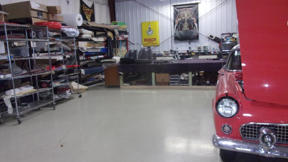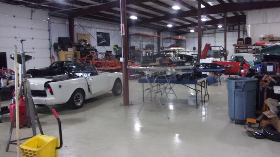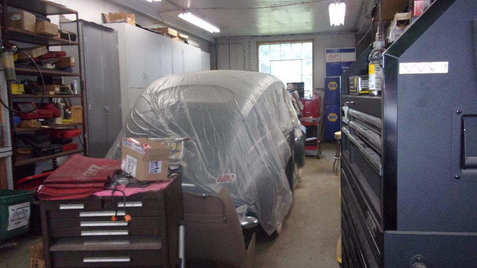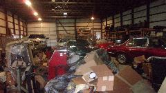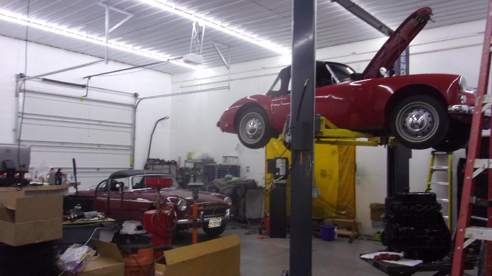 Lots of space inside, and several people on staff. We found a nice Austin Healey 3000 in for minor maintenance today. My wild guess at the plastic cover might be a vintage Plymouth, and the International out back.