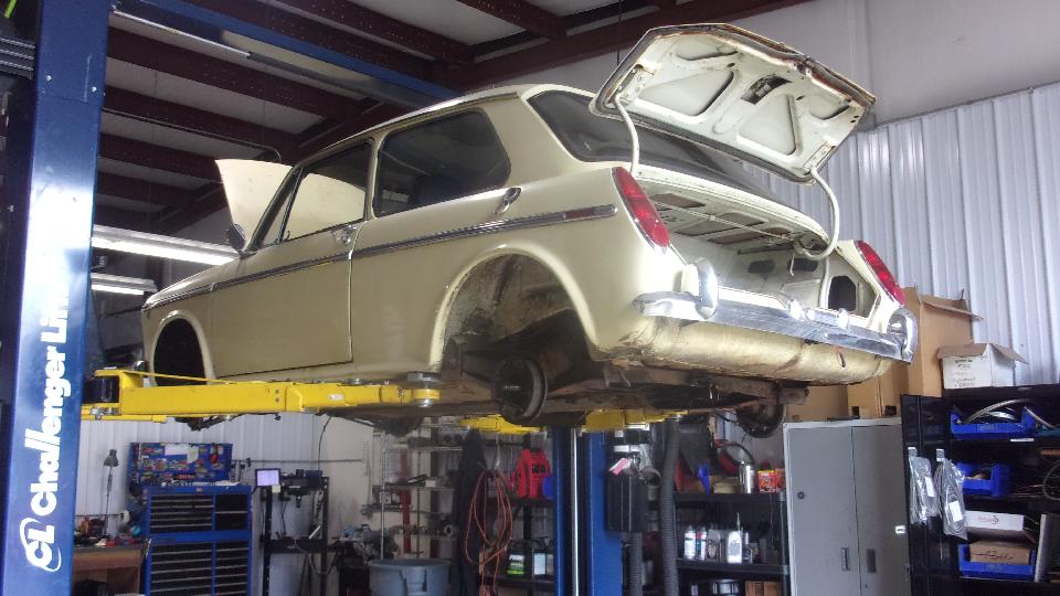 The paint booth is another ingredient in full service restoration one-stop shopping. I found a nice Austin America being restored. A light touch here as I used to own one. In another building, space for storage for customers cars, which will fill up in the winter months. Also a place for cars that are in process but on temporary hold.