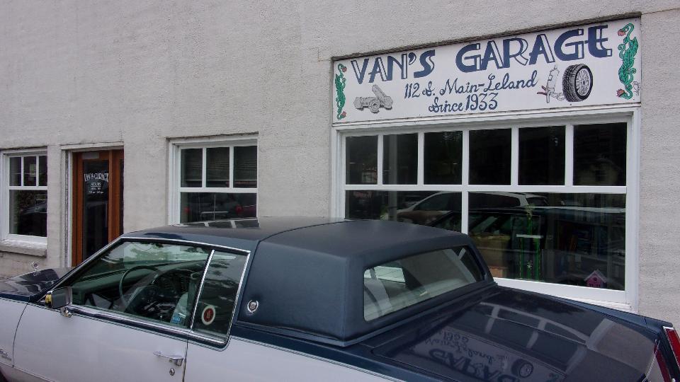One more programmed shop stop today at Van's Garage in Leland, MI. That's about 35 miles northwest of Travers City, out on a peninsula (and in slow going tourist trap territory). That's Van out front, trying to slow down in semi-retirement. His recent entertainment is restoration of a Hupmobile. Meanwhile his son has taken over operation of the commercial shop, which looks like it will be here for many years to come.