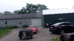 More west just in time for our last programmed stop for the day at D&D Fabrications in Almont, MI. Say hello to Dan LaGrou. He has a fetish for stuffing aluminum V8 engines into MGBs, and he would likely build you a nice performance V8 if you like. Pics outside okay, but not inside. But I can tell you there are about 300 aluminum engine blocks in there, 300 crankshafts, and 1000 cylinder heads. Nice to know there is no shortage of aluminum V8 engines for the B's.