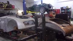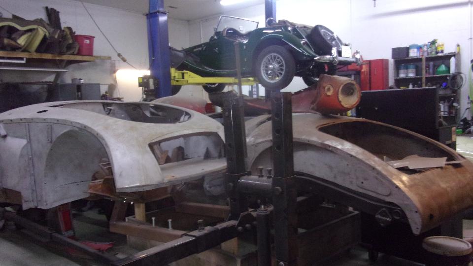 Always plenty of service and restoration work going on here, mostly MGs but occasionally something else may sneak in. That's Mike Blackport organizing the shop work load. Behind him is the original rusty moose.