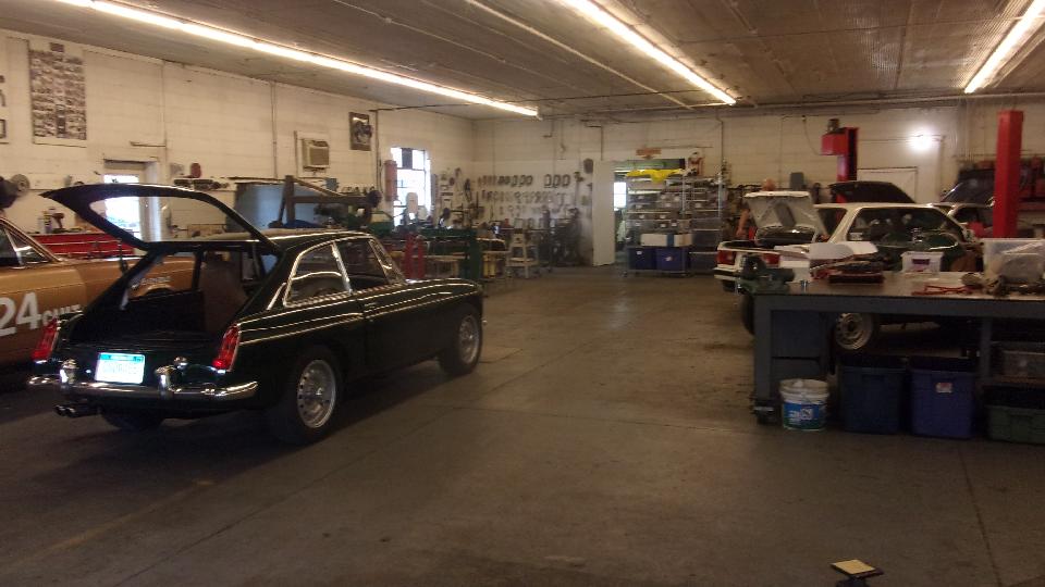 We were looking for Alan Christian Motors in Holland, MI, but no joy here. Gone ten years, now occupied by a modern car repair and transmission shop. There were a few classic cars inside, but the current shop does not service vintage British cars. Marty Boysen, the prior proprietor of ACM has moved on to auto auction and into partnership of Fab Farm which has naught to do with vintage British cars).