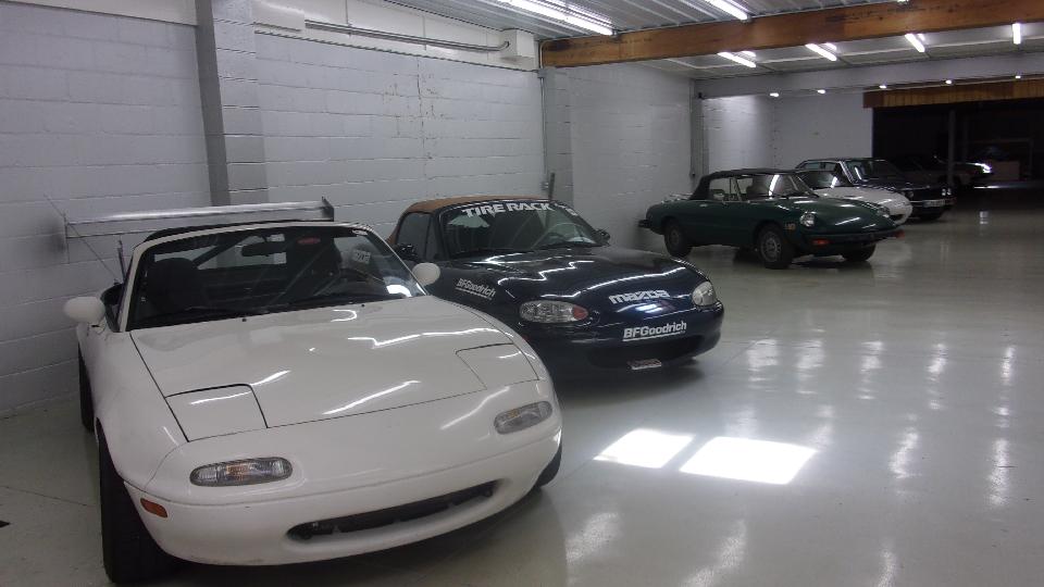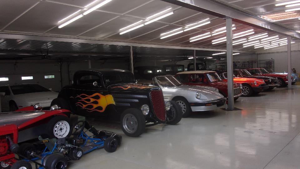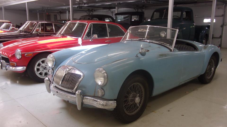 The blue MGA is an all original survivor car, typically buffed through the paint color coat, and a little rust in the body sills, but it would be a shame to restore it. The indoor heated storage space goes on and on as the building covers most of the length of the city block.
